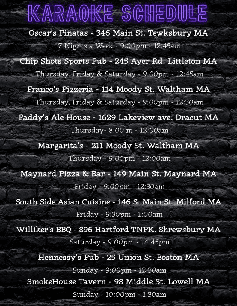 Waltham DJ & Karaoke, Framingham DJ & Karaoke, Natick DJ & Karaoke, Burlington DJ & Karaoke, Woburn DJ & Karaoke, Watertown DJ & Karaoke, Newton DJ & Karaoke, Acton DJ & Karaoke, Littleton DJ & Karaoke
